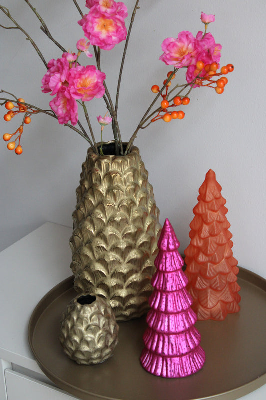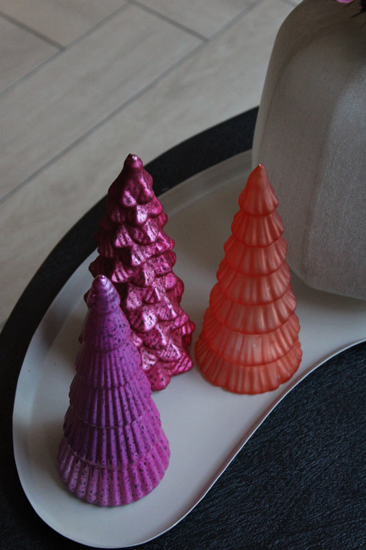 KERSTBOOM SET VAN 3 | ORANJE/FUCHSIA | LED | GLAS