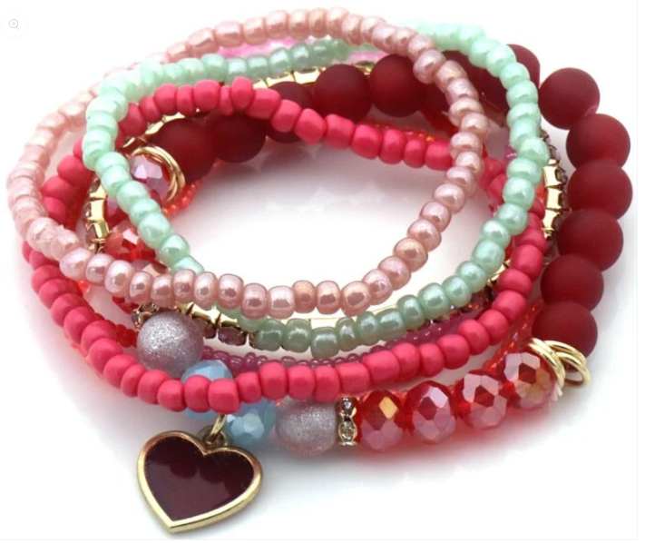 Breng kleur in je look met deze speelse armbandenset van 5! De mix van glaskralen, vrolijke kleuren en charmante bedels in de vorm van een hart en bloem maken deze set perfect voor de zomer. Draag ze samen voor een boho vibe of mix & match met je andere favorieten.