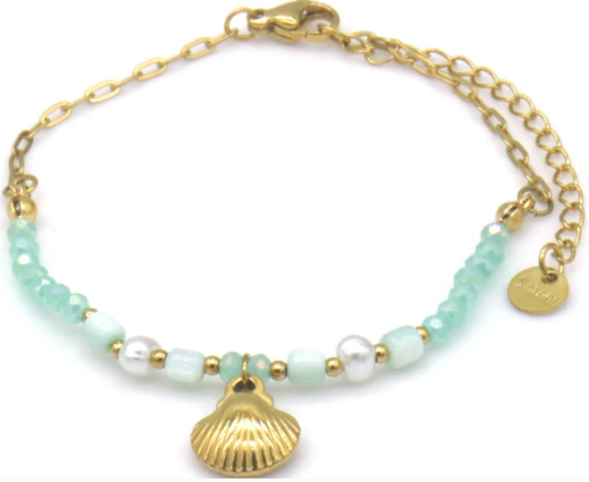 Verkrijgbaar in 6 verschillende kleurcombinaties, is Shellie perfect om solo te dragen voor een subtiele zomerse touch, of te combineren met andere armbanden voor een speels, boho effect. Een stijlvol accessoire dat moeiteloos past bij elke outfit.