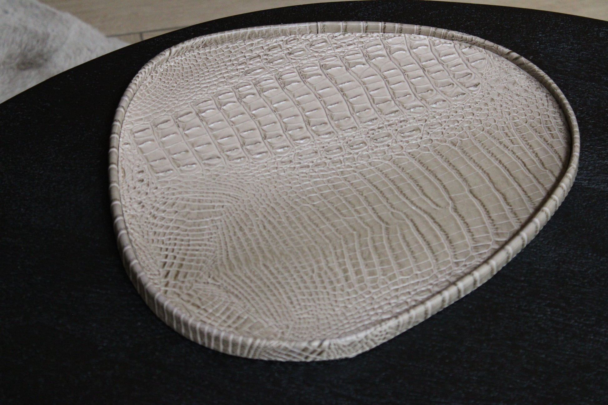 Het Sarahkate dienblad van PTMD combineert elegantie en functionaliteit. Uitgevoerd in hoogwaardig vegan leer met een warme beige tint straalt dit plateau luxe uit, terwijl de organische vorm voor een moderne en speelse touch zorgt.